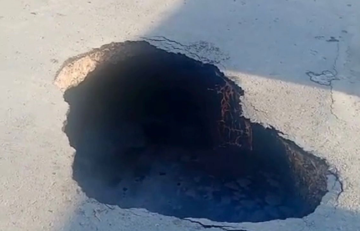 A través de un video filmado por un residente de la zona, se puede observar la magnitud del hundimiento. El socavón se originó a escasos metros de una boca de registro instalada hace apenas unos meses por la empresa estatal Aysam.