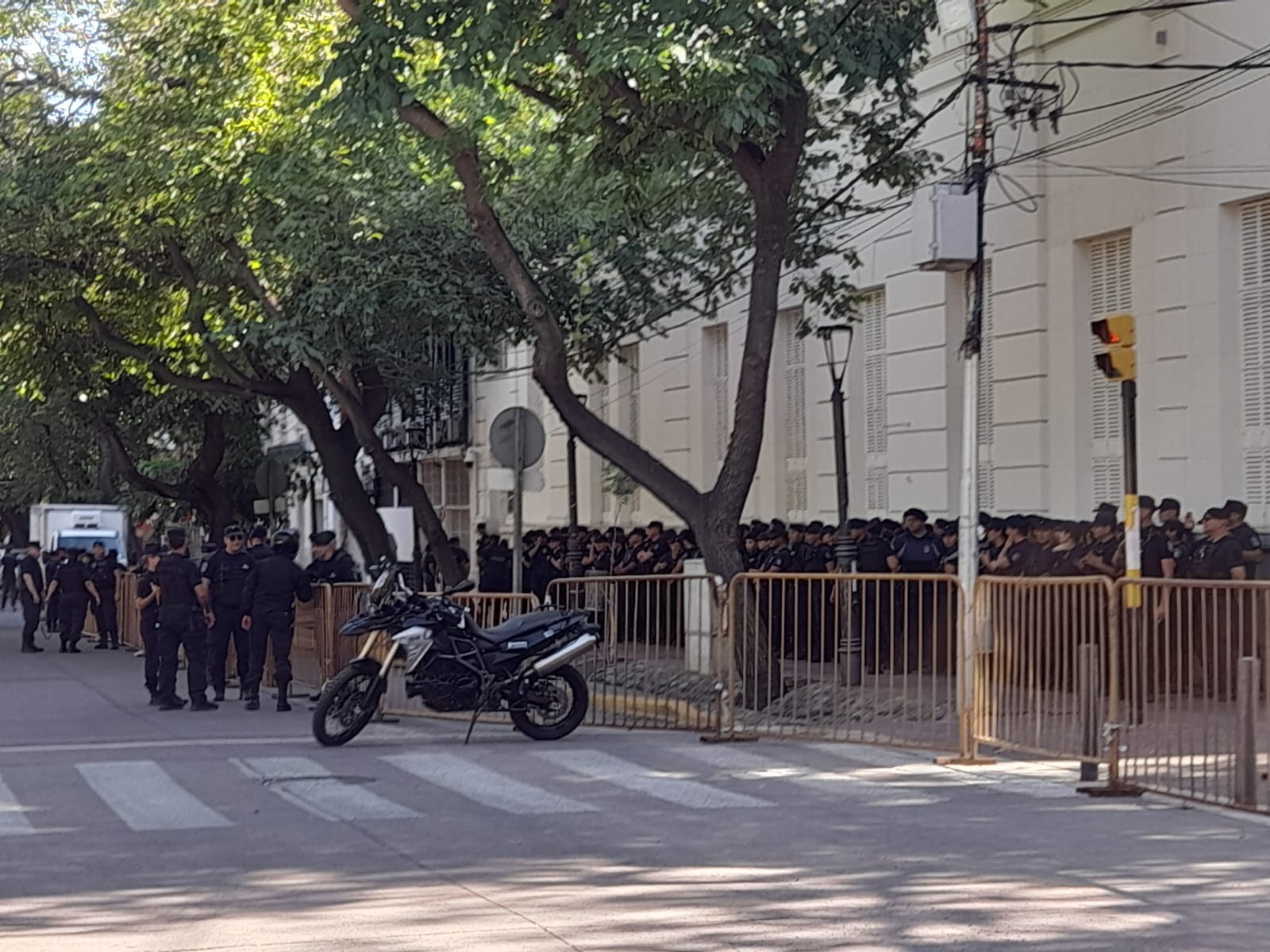 Según fuentes oficiales, son unos 700 los efectivos que ha dispuesto la provincia para controlar diferentes puntos. Además de la Legislatura, hay uniformados custodiando la Casa de Gobierno, el kilómetro cero, el nudo vial y el auditorioa Ángel Bustelo.