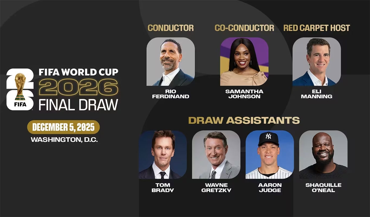 Además del exjugador de Manchester United, también estará la presentadora Samanta Jhonson, acompañada figuras del deporte estadounidense que no tienen absolutamente nada que ver con el fútbol. Pero como es el show de Estados Unidos, que buscó acaparar la atención de todo el fútbol en los últimos 10 años y lo hizo, la FIFA lo avala.