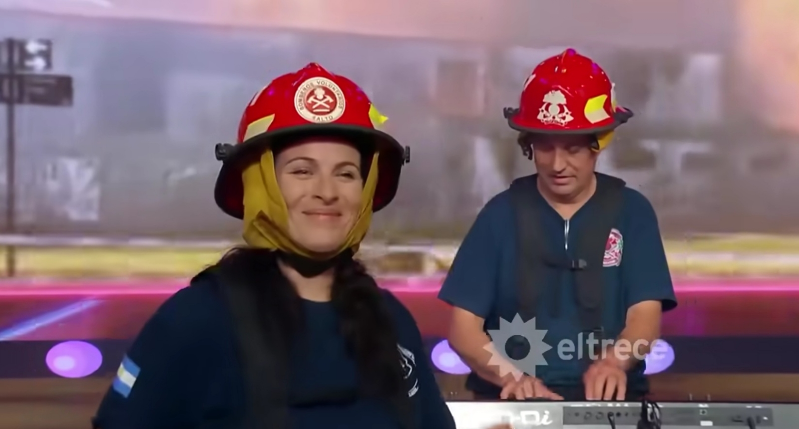 La banda hizo una reversión de la canción de “Fuiste” de Gilda. “Suena la sirena, me subo al camión, el casco, las botas, el chaquetón. Tráeme los guantes, haceme el aguante”, cantó la mujer mientras que el resto del cuartel tocaba los instrumentos atrás.