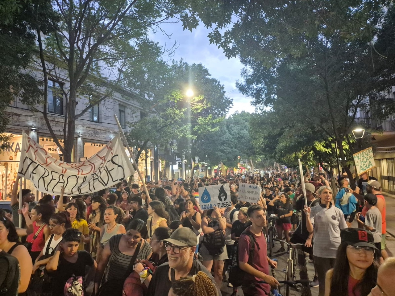Entre 8 mil y 10 mil personas que se oponen al proyecto minero San Jorge llegaron al centro mendocino y pasadas las 21 coparon la Plaza Independencia para "defender el agua" de Mendoza y concientizar a la gente sobre la importancia de su uso y de que la economía mendocina no necesita desarrollos mineros.