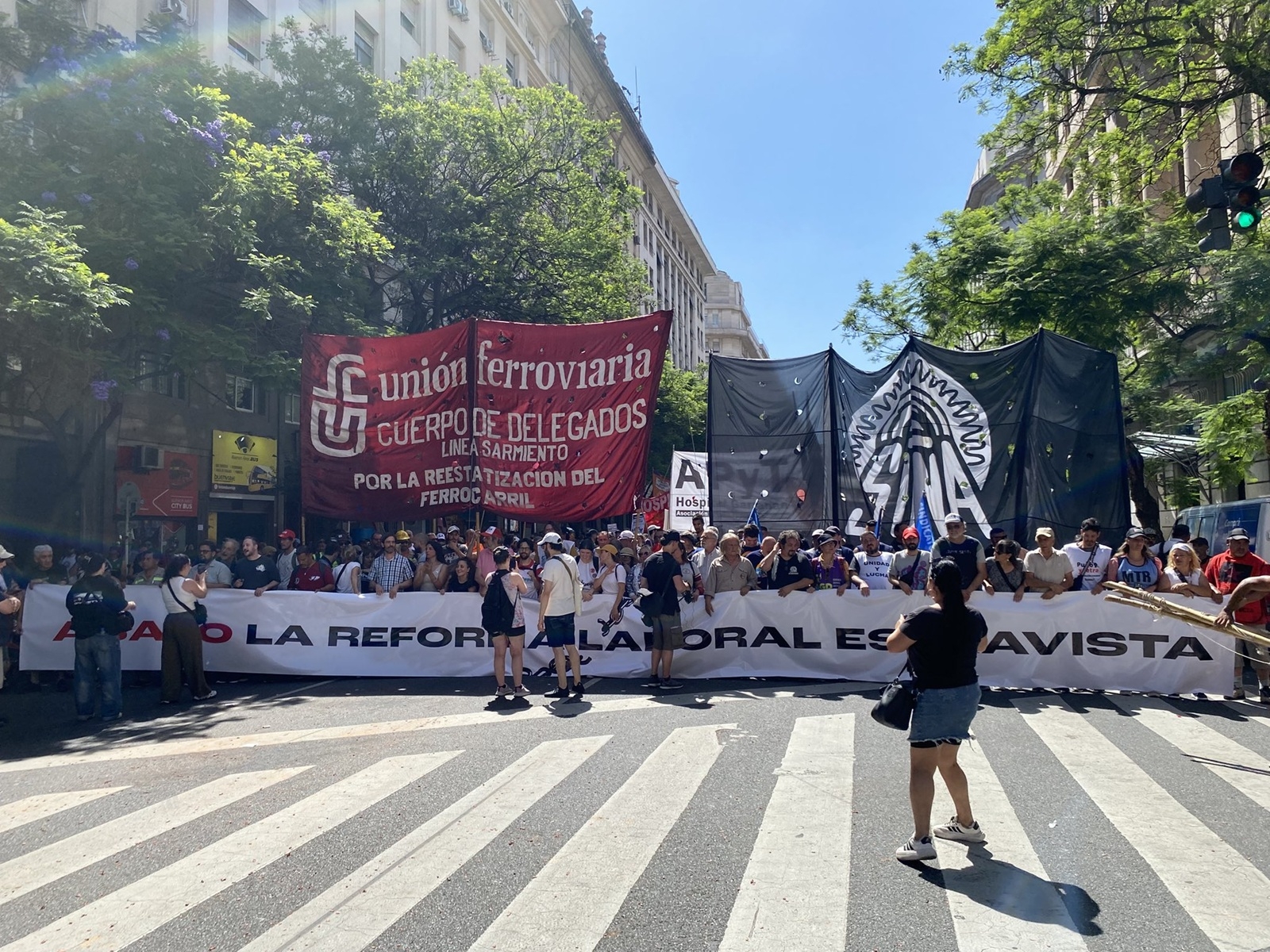 En las primeras horas de la tarde de este jueves comenzaron a llegar gruesas columnas de manifestantes a las inmediaciones de la Plaza de Mayo en el marco de la marcha convocada por la CGT en contra de la reforma laboral que impulsa el Gobierno Nacional.