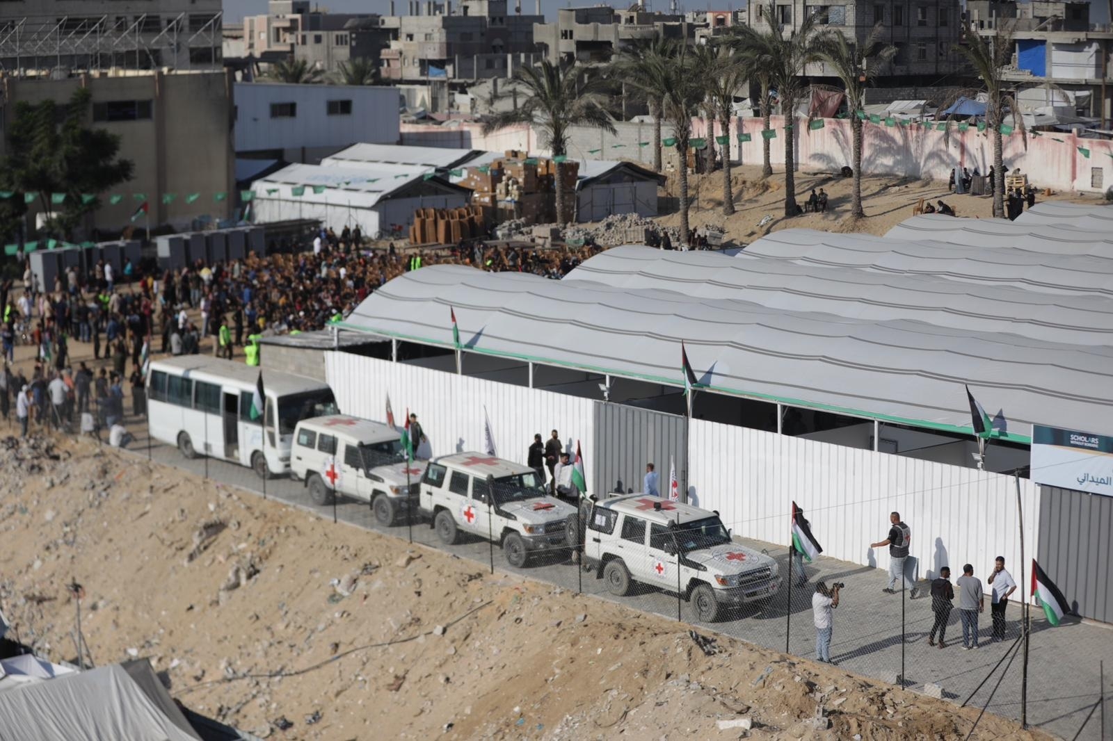 El primer grupo de siete rehenes israelíes fue liberado a primera hora del día como parte de un intercambio de prisioneros a gran escala, mediado por Egipto y Qatar, con el CICR facilitando su entrega a la parte israelí.
