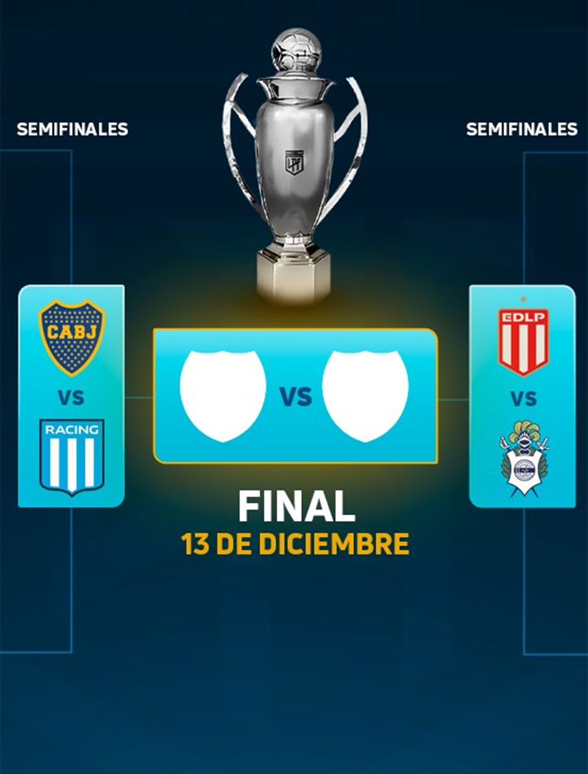 La LPF confirmó día y hora de las semifinales del Clausura: Boca recibirá a Racing y Gimnasia y Esgrima La Plata a Estudiantes.