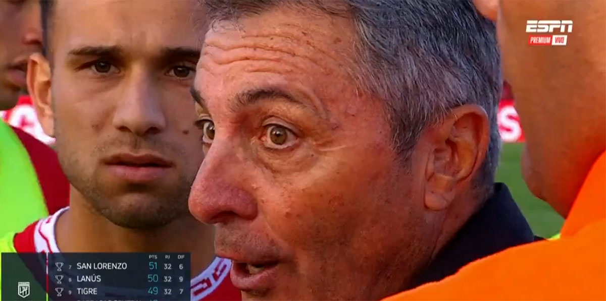 El DT de 64 años acusó al juez de haberse “metido” con su familia, a lo que Gariano respondió de manera inadmisible: “Vamos a hablar y te voy a romper todo”, con un tono agresivo, que generó el repudio inmediato de los representantes del equipo de Parque Patricios.