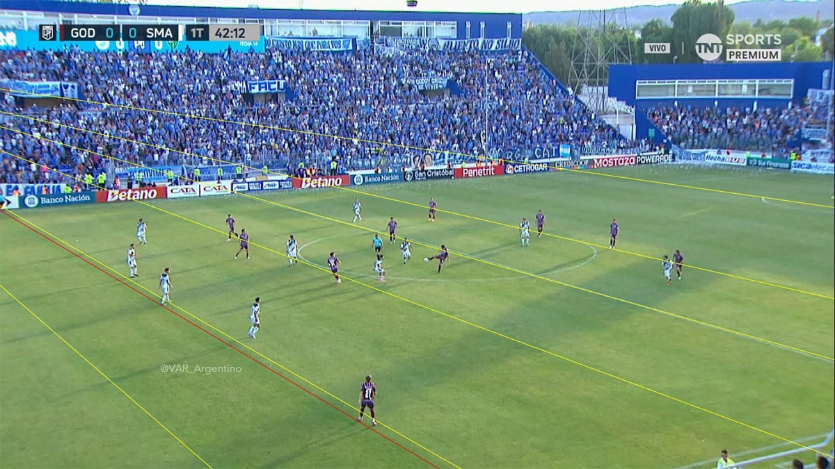 Es que a los 41 minutos le anularon un gol que era válido al delantero Agustín Auzmendi, por off side de Santino Andino, que nunca existió como se ve en la imagen principal de esta nota.