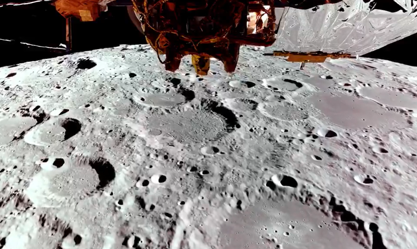 La imagen principal, registrada a través de las ventanillas de la cápsula, muestra a una Tierra de azul tenue y nubes brillantes ocultándose tras el horizonte lunar craterizado.