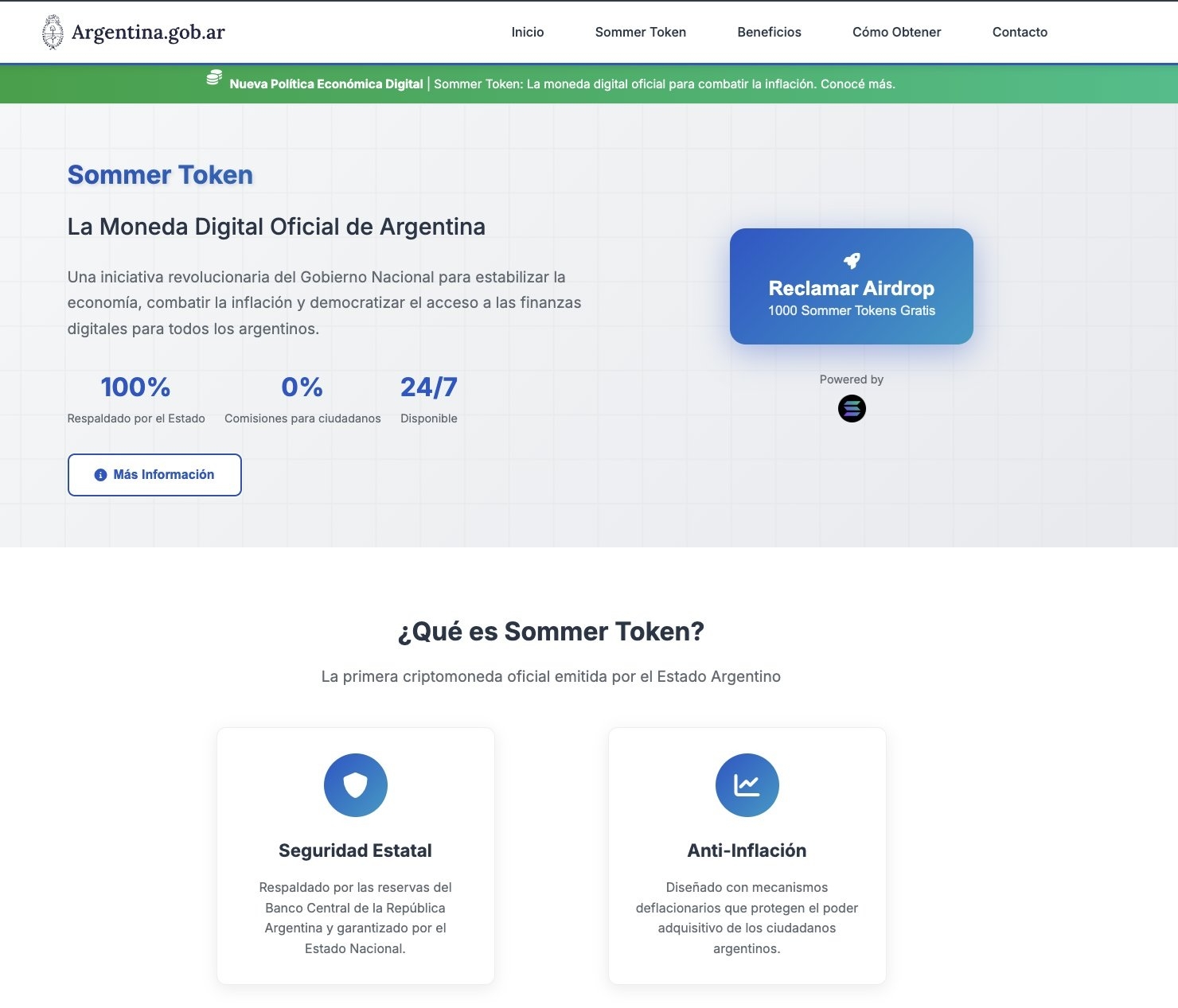 El Gobierno nacional tuvo que salir a aclarar que es "falso" un sitio web que circulaba asociado al Hospital Nacional Sommer y que promocionaba una criptomoneda denominada "Sommer Token". El supuesto activo digital era presentado como una "iniciativa revolucionaria del Gobierno nacional" para "combatir la inflación" y "democratizar el acceso a las finanzas digitales".