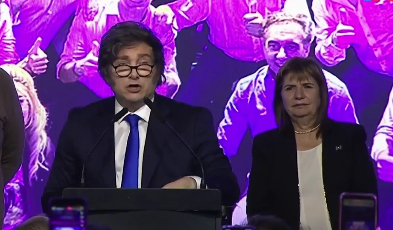“Nunca se había podido pasar, y este sistema termina con la trampa”, destacó Milei desde el bunker de LLA en el Hotel Libertador. Agradeció a Luis Petri, a Patricia Bullrich y al ministro de Economía, Luis Caputo.