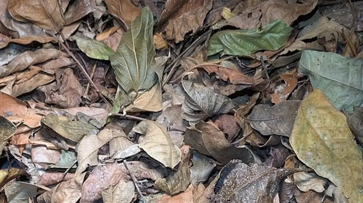 Un usuario de Reddit publicó una fotografía que a simple vista parece ser un montón de hojas. Sin embargo, entre el follaje hay un curioso personaje escondido y se volvió viral.