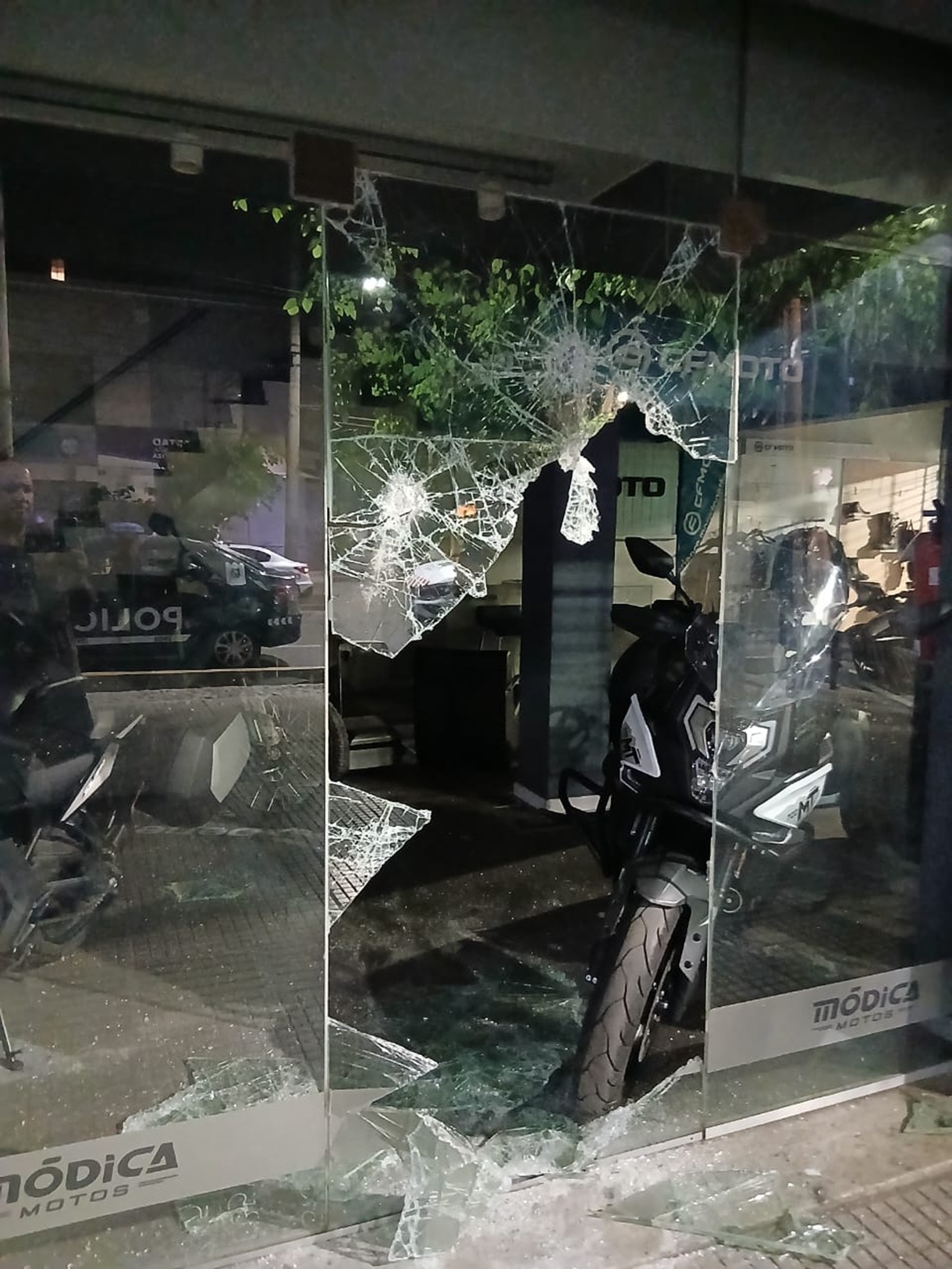 En la madrugada de este viernes, un joven de 15 años atacó nuevamente este local y se llevó objetos de menor tamaño que se encontraban en la vidriera, como cascos. La policía logró en esta oportunidad capturarlo.