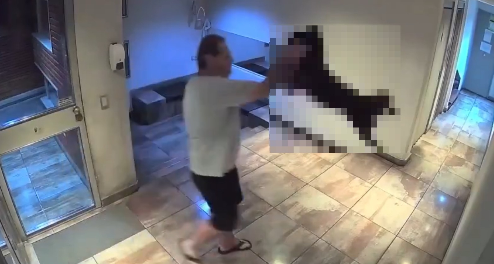 El violento hecho fue registrado en la noche del martes por las cámaras de seguridad del edificio. Una vecina que accedió a las imágenes decidió denunciar al agresor.