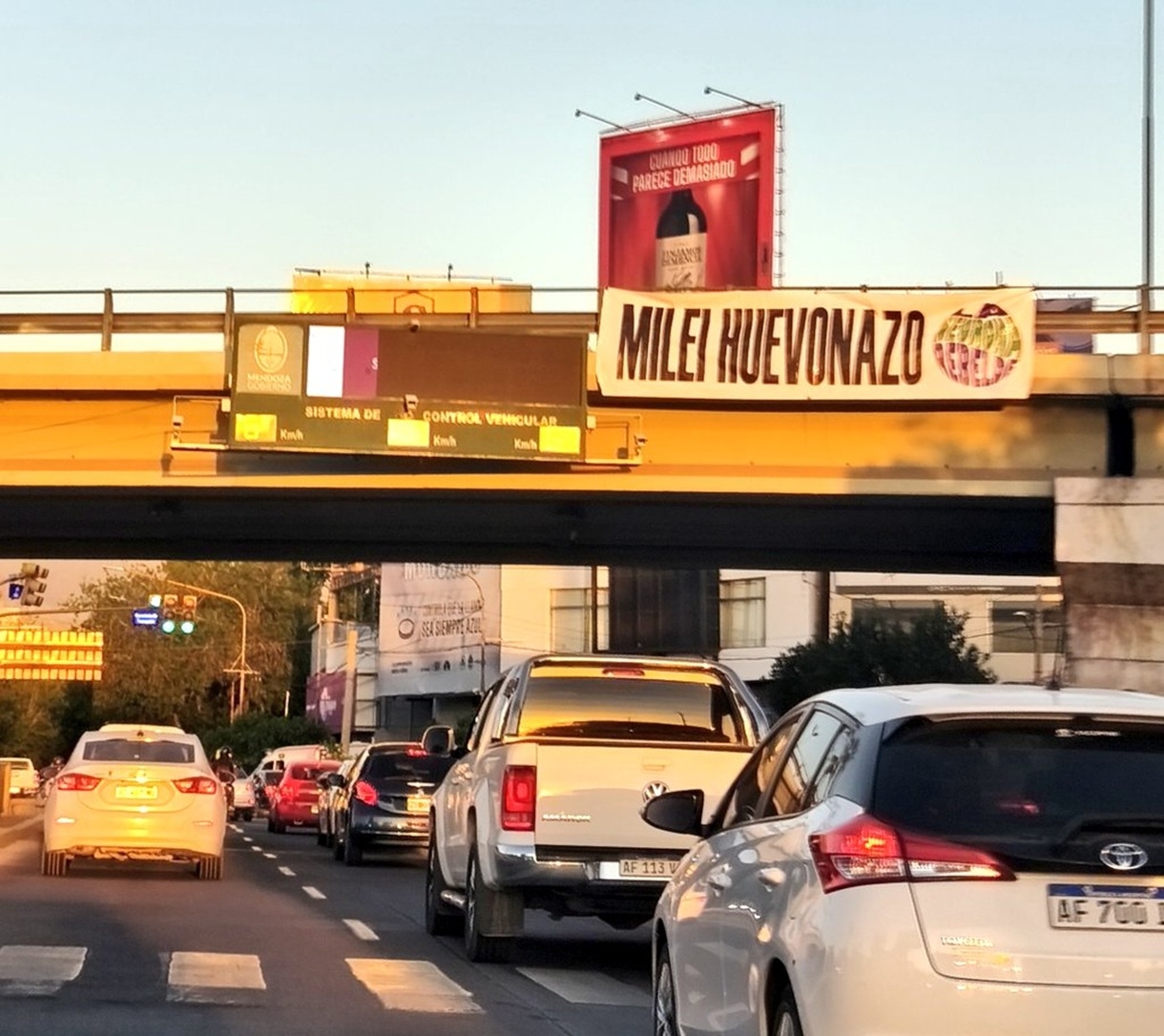 La llegada del mandatario no fue celebrada por todos. Así se vio reflejado en un cartel que fue colocado en las primeras horas del jueves en el nudo vial. La pancarta fue descolgada rápidamente.