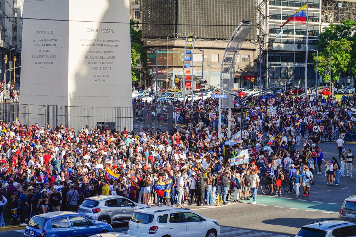 Miles de ciudadanos de Venezuela residentes en Argentina se concentraron el sábado en las inmediaciones del Obelisco.