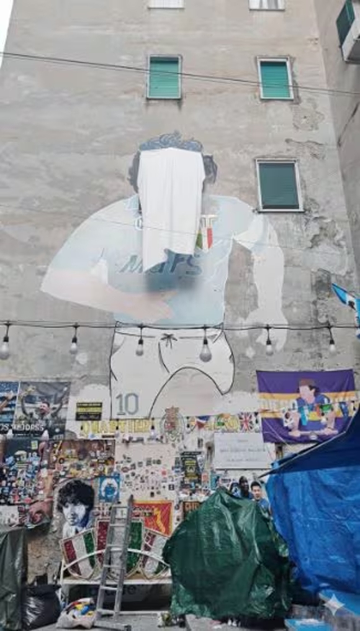 Ante esta situación, y a modo de protesta, los dueños de los locales que se encuentran ubicados en el Quartieri Spagnoli decidieron tapar la cara de Maradona en el mural. Además, argumentaron que los permisos de habilitación se encuentran en trámite.