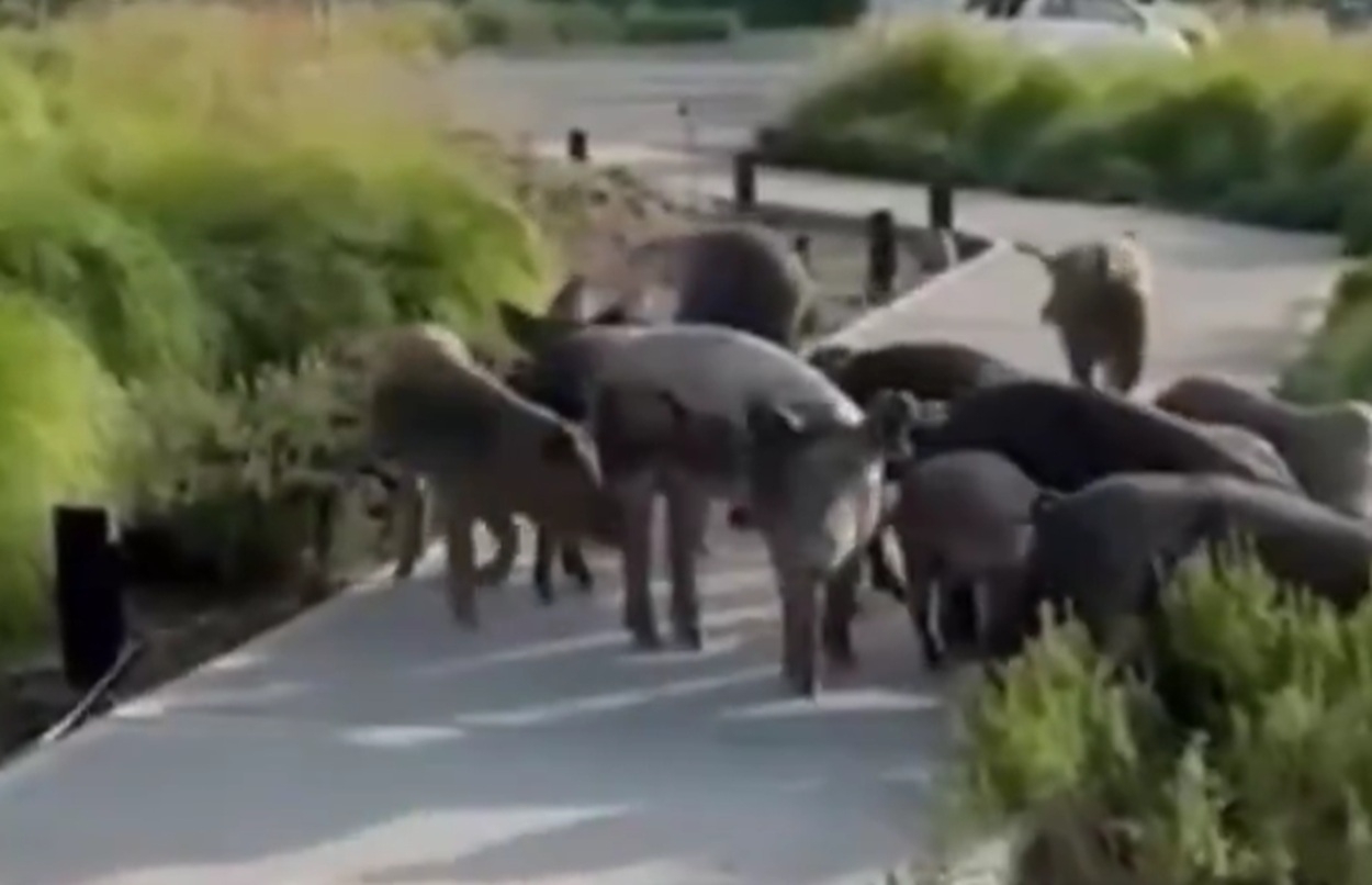 Se trata de una familia numerosa de chanchos que fueron avistados por un vecino. "Aparecieron chanchos sueltos. Esto no me lo esperaba", expresó el hombre al ver a los animales adultos y pequeños caminando en el estacionamiento.