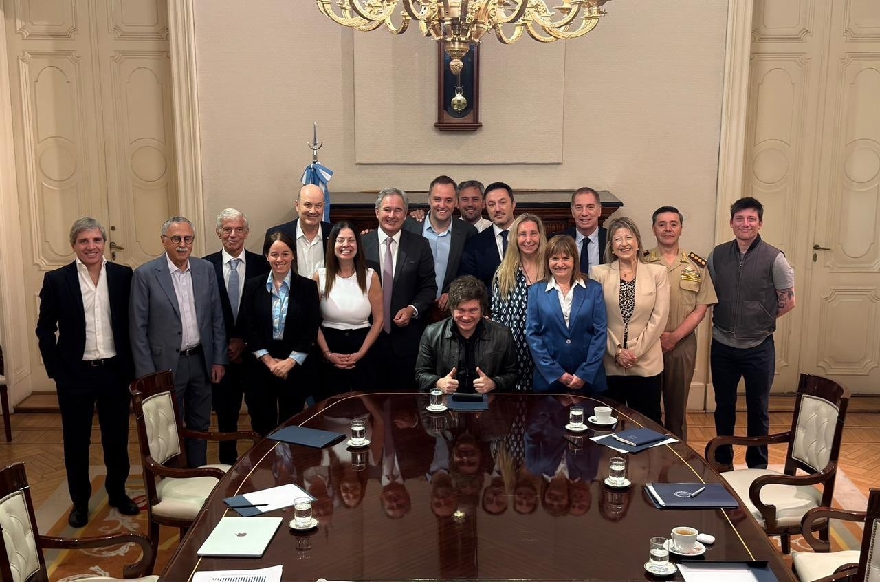 El temario incluyó el debate por las estrategias que deberá intensificar el Poder Ejecutivo para sumar adhesiones de las provincias y de los bloques aliados al Presupuesto 2026. Además, hubo mención a la reforma laboral en la que trabajan los equipos técnicos en coordinación con Sturzenegger.