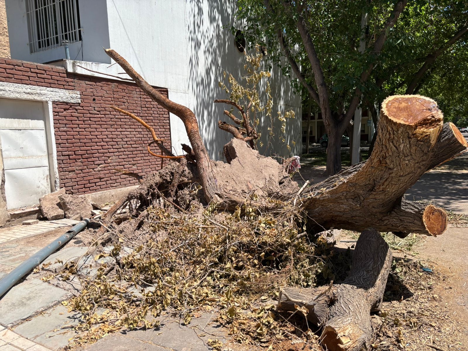 Lo que comenzó como una de las tantas consecuencias de la fuerte tormenta del pasado 30 de enero, se ha convertido en una preocupación constante para vecinos de Villa Nueva, Guaymallén. A casi tres semanas del temporal, un ejemplar de gran porte continúa tendido sobre la vereda en la intersección de las calles Magallanes y Donado.
