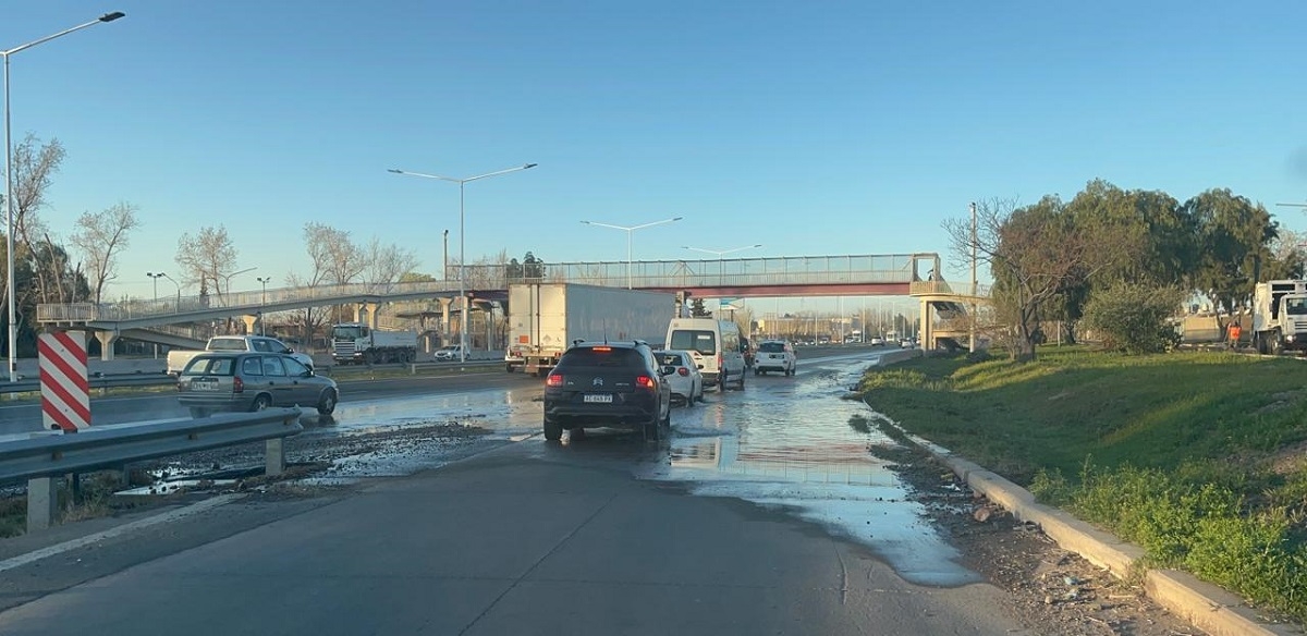 Peligro latente y demoras en el Acceso Sur por una importante pérdida de agua
