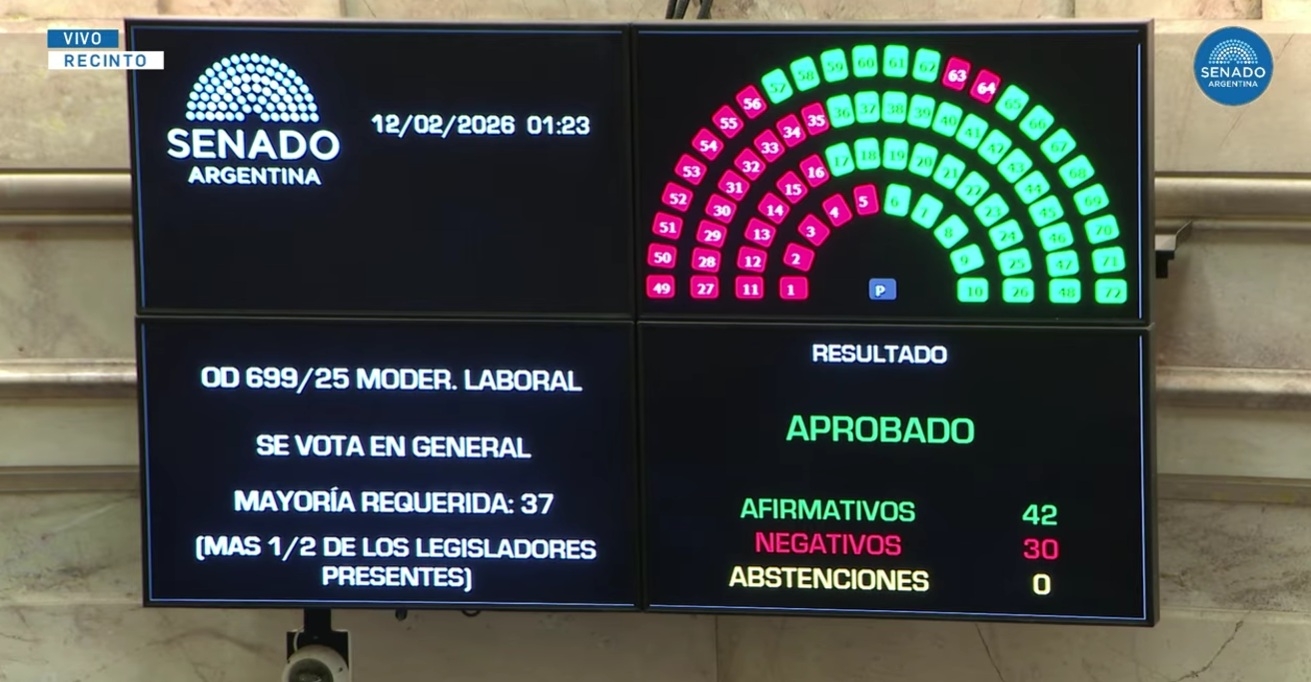 En una sesión maratónica que culminó en la madrugada, el Senado de la Nación otorgó media sanción a la reforma laboral impulsada por el Gobierno de Javier Milei. El tablero final arrojó un contundente 42 a 30, superando el umbral de 37 votos necesarios y habilitando el giro a la Cámara del Senado, donde el Ejecutivo buscará la sanción definitiva antes del 1° de marzo.