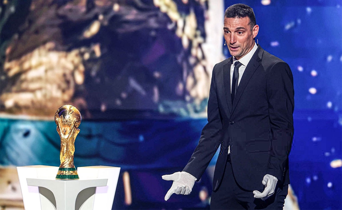 Scaloni, que protagonizó un emotivo momento al entregar la Copa del Mundo antes de que comience el sorteo, reconoció dicha situación como muy emotiva: “Tenerla en la mano es algo único”.