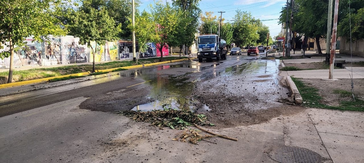 Un socavón de gran magnitud, provocado aparentemente por una rotura en la red de agua, ha transformado la calle Estrada de Guaymallén (antes de Pedro Vargas) en un punto crítico para la seguridad vial.