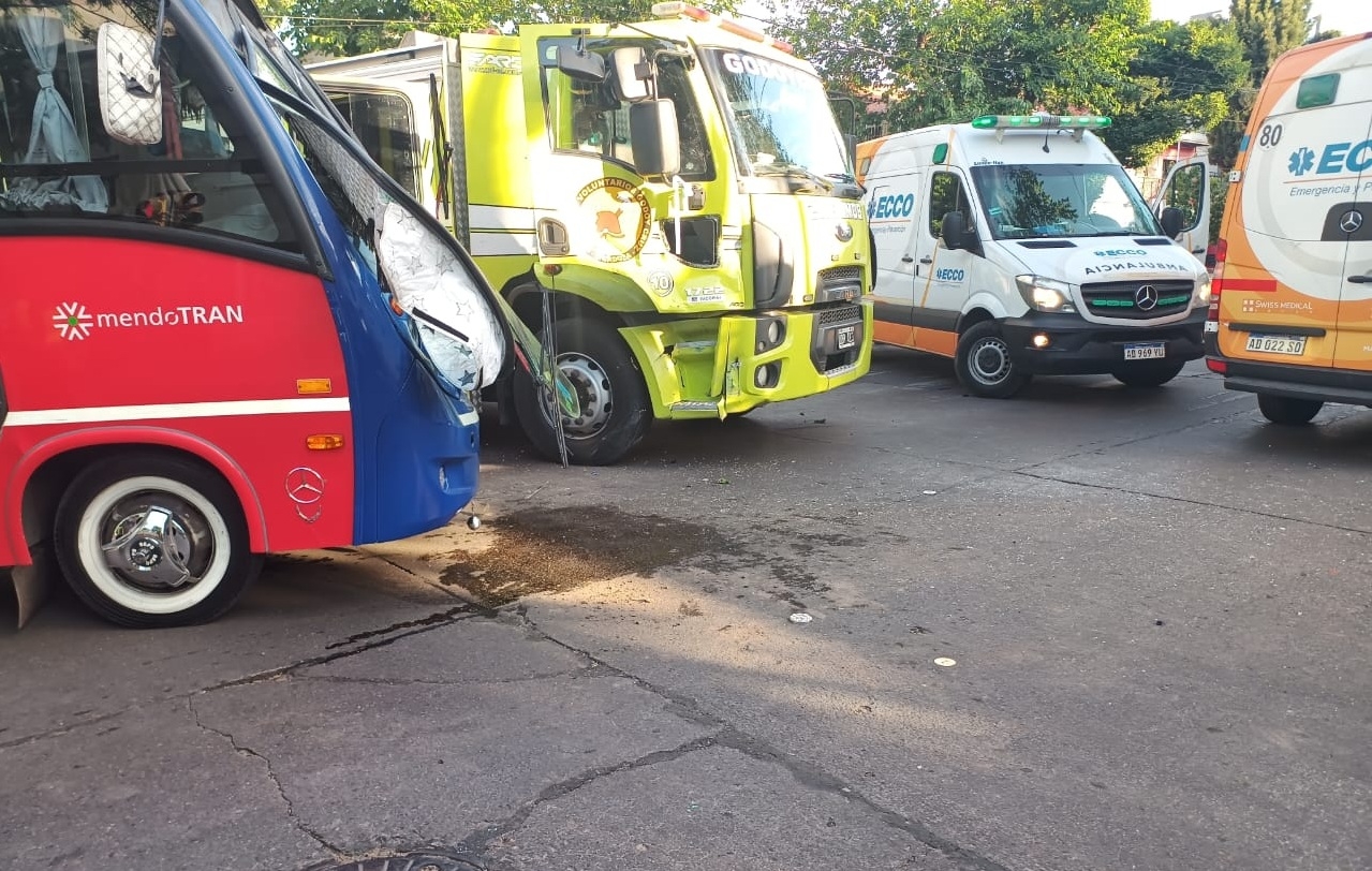Una autobomba de los Bomberos Voluntarios de Godoy Cruz chocó con un colectivo del Grupo Trapiche en Godoy Cruz, informaron este miércoles fuentes del Ministerio de Seguridad y Justicia.