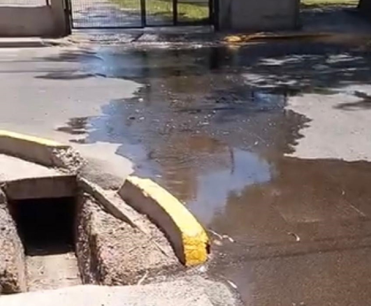 La intención principal era regar el paseo Suarez, por eso colocaron un caño debajo de un badén. Sin embargo, el agua siempre sale por la calle y lo que menos se riega es el paseo. Los vecinos piden una solución urgente y definitiva a las autoridades municipales.