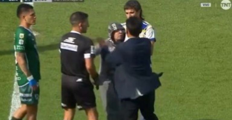 El hecho ocurrió justo cuando el juego estaba por reanudarse y los futbolistas de ambos equipos intentaron calmar la situación. De inmediato intervinieron la policía y el personal de seguridad, que lograron reducirlo.