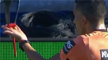 Desde la tribuna local se arrojó un martillo que impactó en el césped y luego rebotó en el rostro de Falcón Pérez, generando preocupación entre los protagonistas y una breve interrupción del juego.