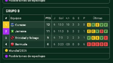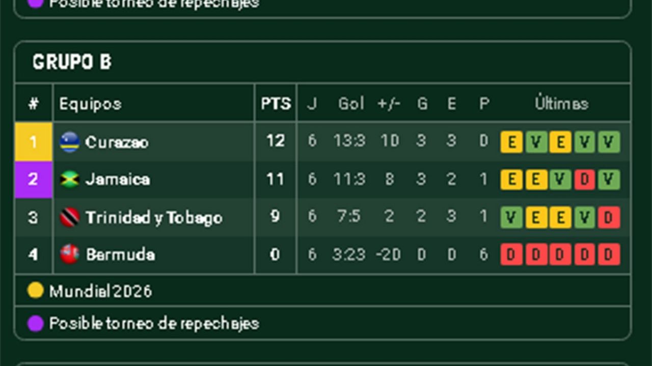 En el Grupo B, el empate a cero favoreció a Curazao, que finalizó puntero con 12 puntos, seguido de Jamaica con 11.