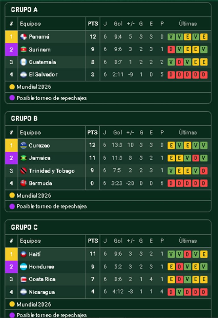 Con dos sorpresas mayúsculas finalizaron las Eliminatorias de Concacaf. Panamá hizo los deberes y clasificó, Haíti metió batacazo y dejó afuera a Honduras; y el sorpresivo Curazao sellaron su participación en el Mundial 2026 tras quedar como lideres de grupo, mientras que Jamaica y Surinam disputarán el repechaje.