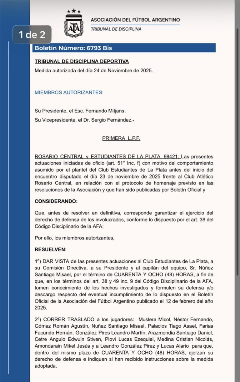 Pablo Dóvalo confirmó que elevará un informe al Tribunal de Disciplina de la AFA, que ya le dio 48 horas a Estudiantes para que se defienda.