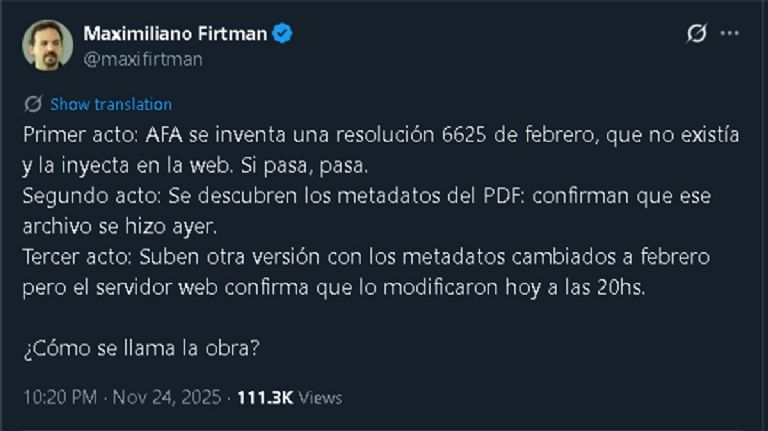 Milei sentó postura con Estudiantes, hostigado por una AFA que falseó un PDF