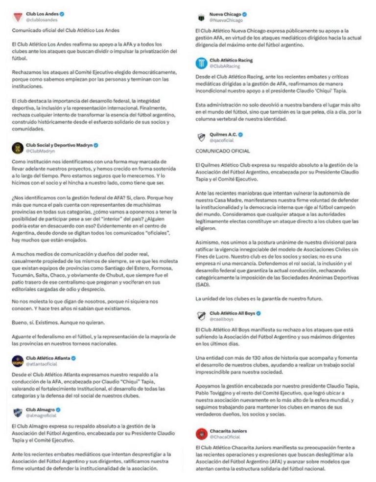 AFA) estarían pidiendo que los clubes demuestren su respaldo hacia Chiqui Tapia, Pablo Toviggino y demás, se viralizó en las redes sociales.