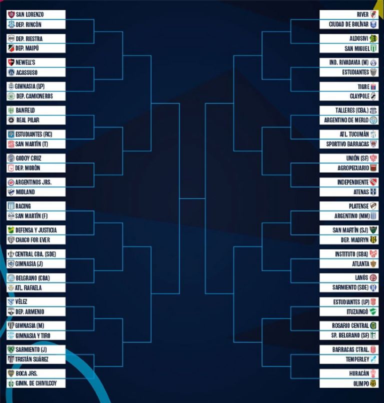 Los 5 equipos grandes salieron bastante favorecidos dado que Boca enfrentará a Gimnasia de Chivilcoy, River a Ciudad de Bolívar, San Lorenzo a Deportivo Rincón de los Sauces (Neuquén), Racing a San Martín de Formosa e Independiente de Avellaneda a Atenas de Río Cuarto.