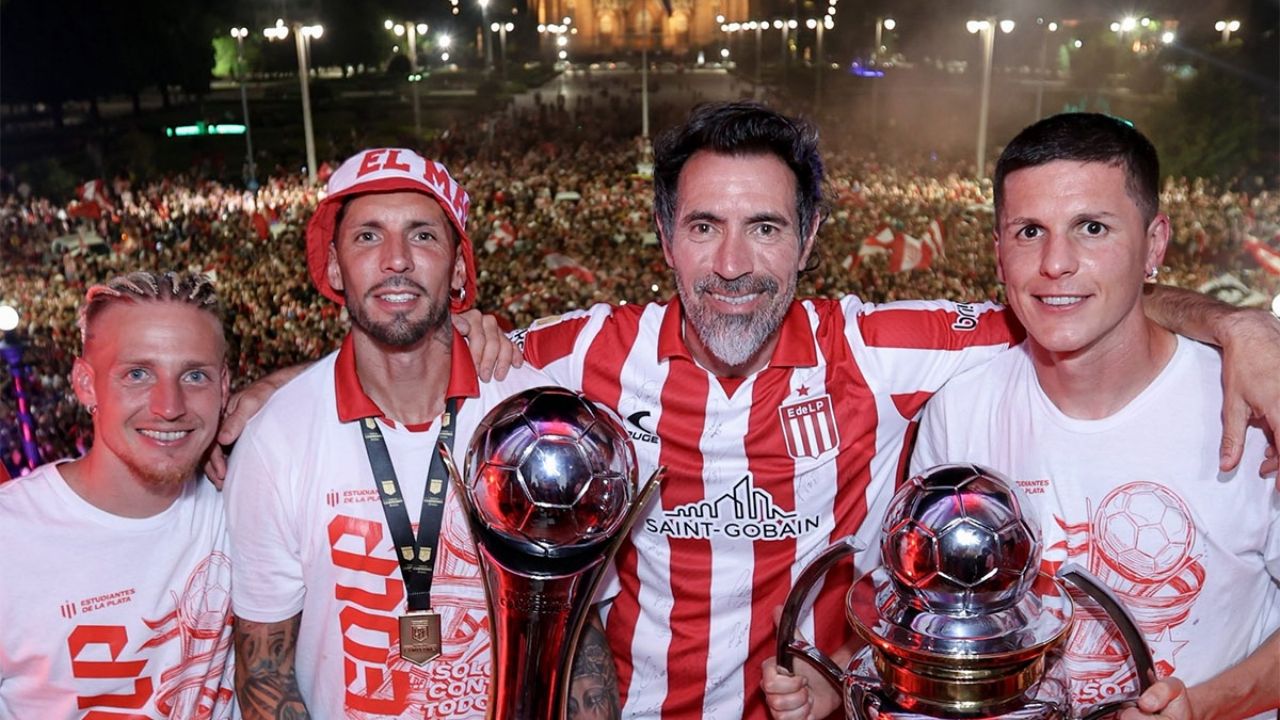 Durante la celebración en Plaza Moreno, en la ciudad de La Plata, tras la obtención por parte de Estudiantes del Trofeo de Campeones ante Platense y la consagración en el Torneo Clausura, los hinchas manifestaron su respaldo al DT con cánticos a favor de su permanencia.