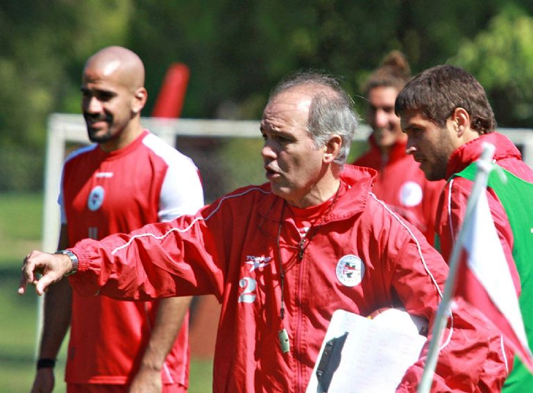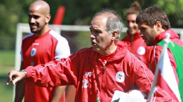 Alejandro Sabella en una práctica de Estudiantes con el actual presidente del club