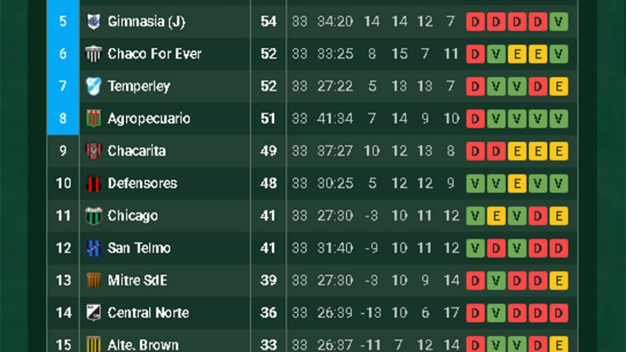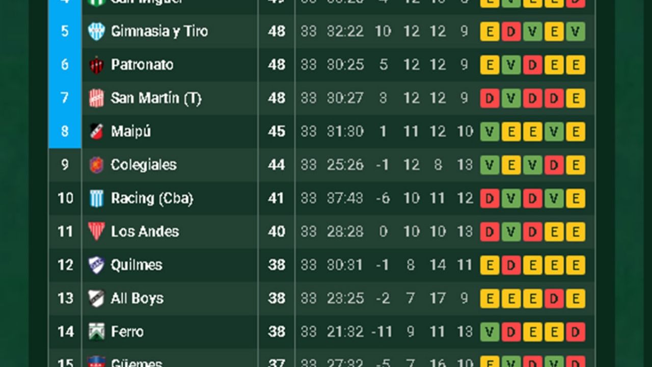 Para colmo no le sirve con empatar ante Defensores de Belgrano en la última fecha porque tiene peor diferencia de gol que Estudiantes (también que Morón pero con el empate ya el Gallito no lo alcanzaría).