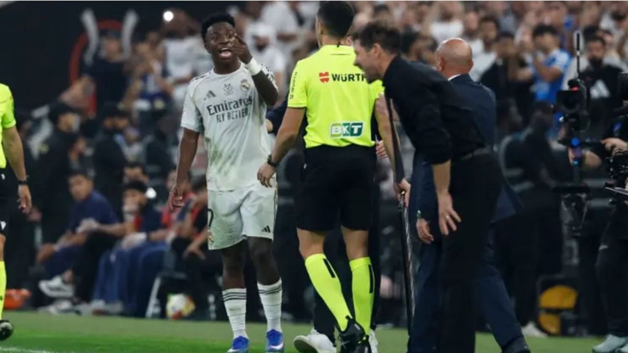 El director técnico del Atlético de Madrid, Diego Cholo Simeone, y el extremo brasileño del Real Madrid Vinicius Juniors protagonizaron varios tensos cruces durante el encuentro del jueves por las semifinales de la Supercopa de España que terminó con victoria del Merengue por 2 a 1.