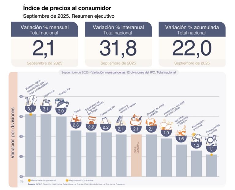A modo de anticipo, la inflación de la Ciudad de Buenos Aires en el mes pasado alcanzó el 2,2%, una notoria aceleración frente al 1,6% de agosto. La variación de precios en el territorio porteño durante 2025 alcanza 22,7%, mientras que en un año subió 35%.