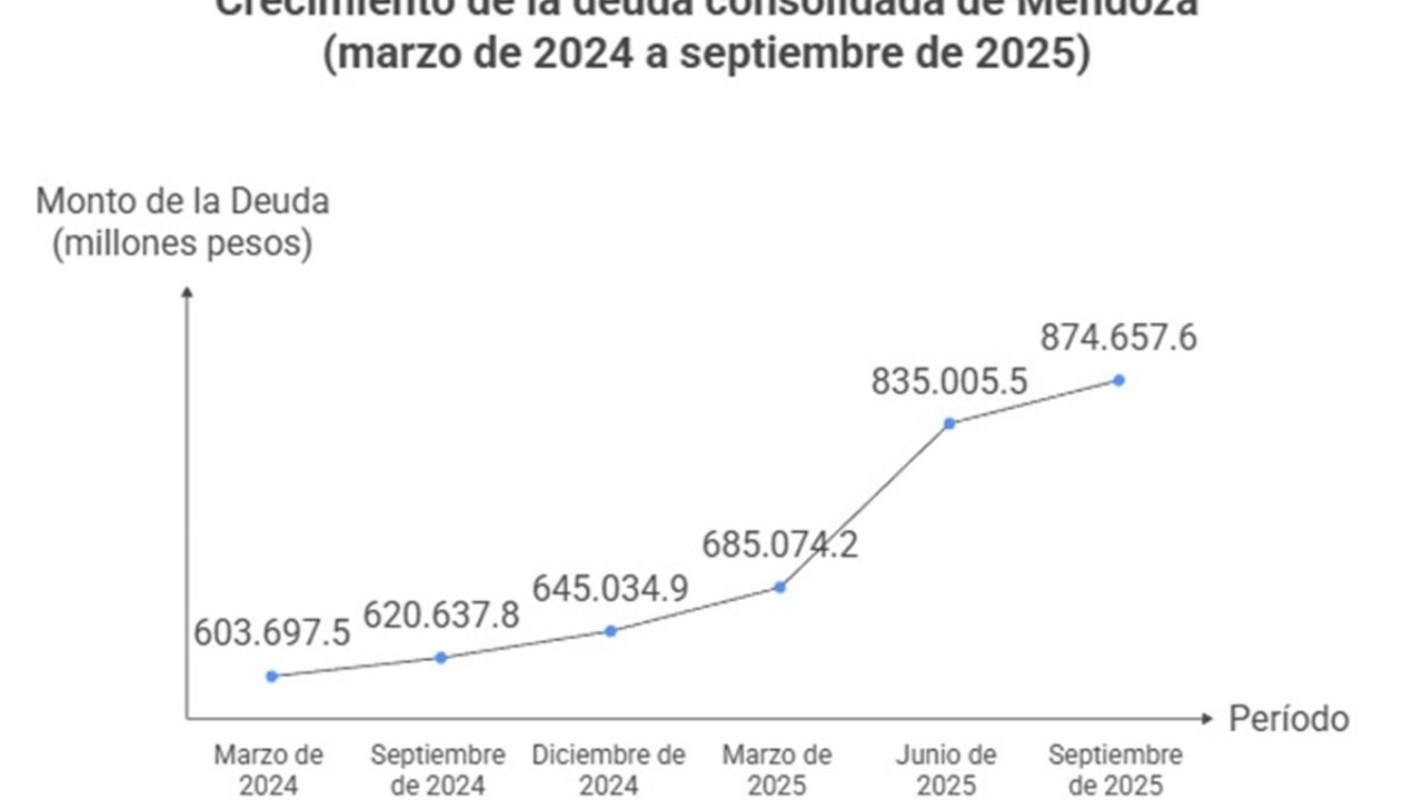 Según la DEIE, la deuda consolidada pasó de $ 620.637,8 millones en septiembre de 2024 a $ 874.657,6 millones en septiembre de 2025, impulsada por aumentos en los títulos públicos, los organismos multilaterales y la banca comercial.
