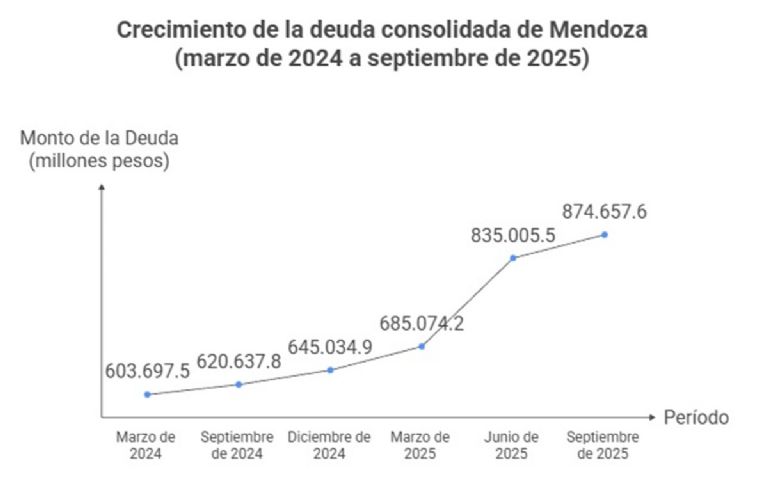La deuda pública de Mendoza creció más de 40% en doce meses
