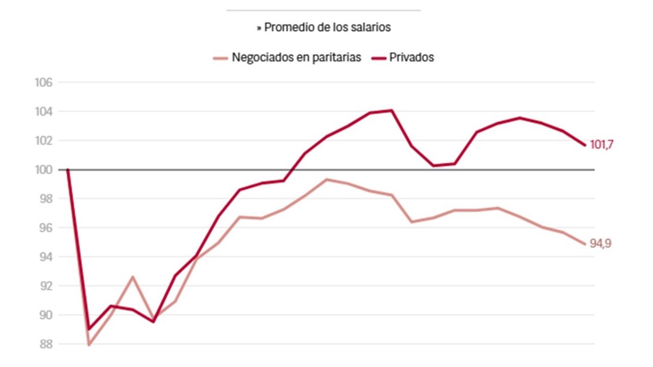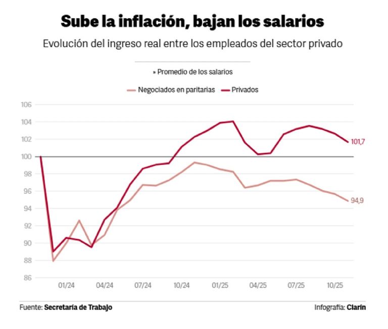 La Secretaría de Trabajo midió que entre septiembre y noviembre pasado los ingresos de empleados asalariados cayeron casi 2%. Los salarios negociados en paritarias fueron los más perjudicados. Por qué creen que el Gobierno abandonó el "ancla" salarial tras las elecciones.
