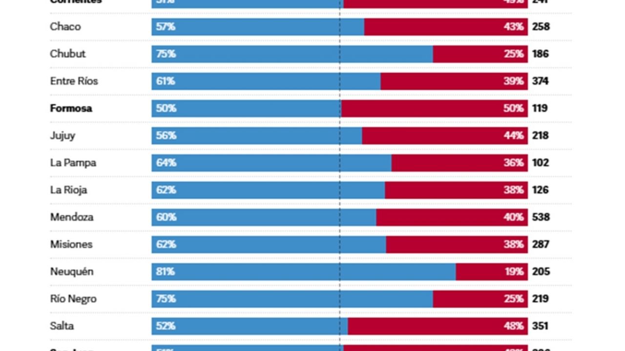 Santiago del Estero le sigue en el ranking: sobre 193.000 asalariados, 99.000 se desempeñan en la informalidad (51,3%) y 94.000 son formales.