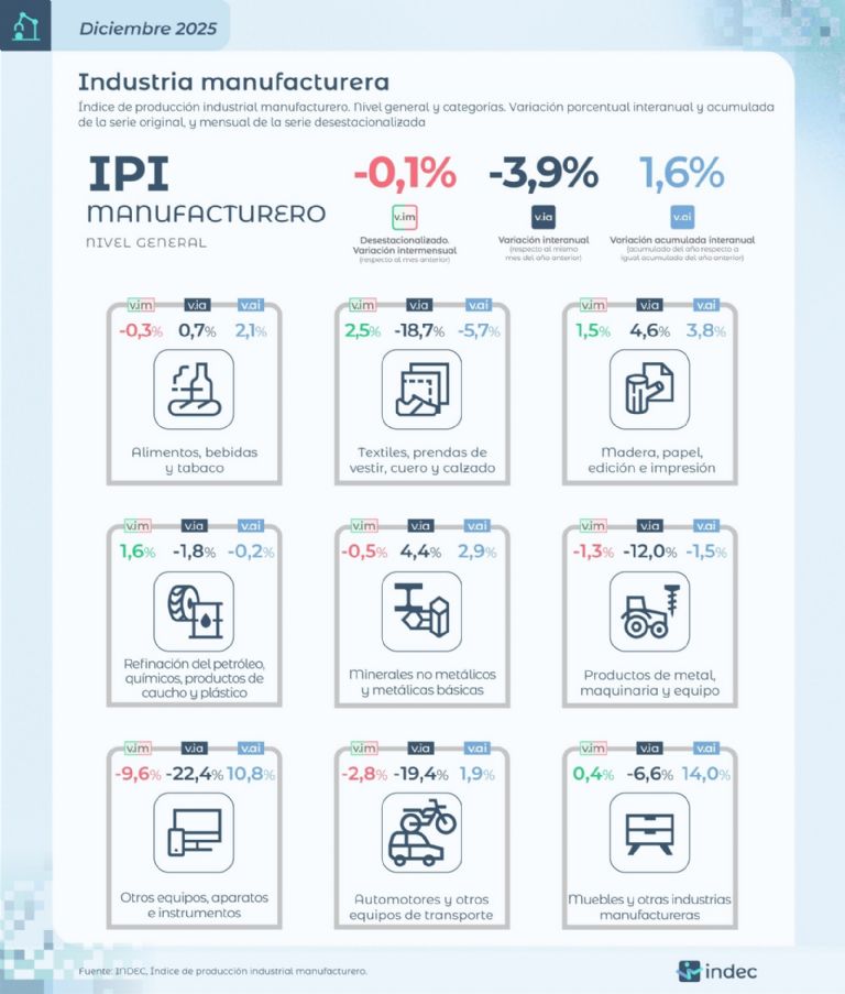 En la era de Javier Milei, la industria nacional acumuló un retroceso del 6,2%
