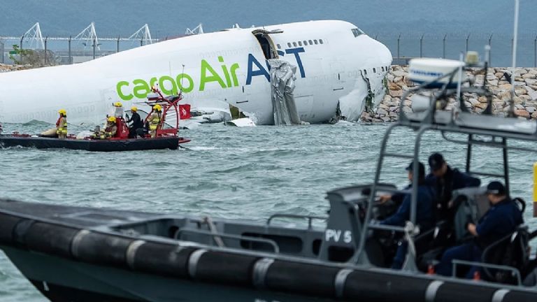 A primera hora de este lunes, un avión de carga se salió de la pista cuando aterrizaba en Hong Kong, impactó contra un rodado de patrullaje y cayó al mar. Dos personas murieron en el trágico hecho, informaron autoridades. Cuatro miembros de la tripulación aeronáutica fueron rescatados y llevados al hospital. Respecto de las víctimas fatales, se indicó que eran personas que estaban en el vehículo terrestre del aeropuerto, que colisionó con la aeronave y que también cayó al agua.