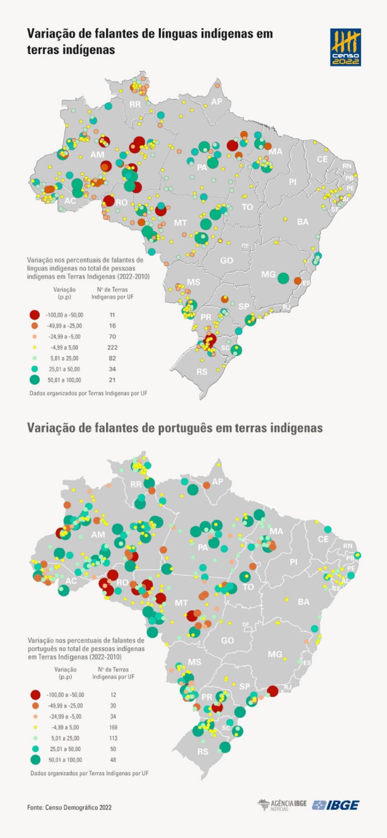 El censo también registró por primera vez 21 lenguas indígenas, entre ellas Akawai, Akroá Gamela, Arekuna, Kamarakoto, Kumaruara, Patuá (criollo), Língua de Sinais Kiriri (lengua de señas Kiriri) y Wayuu, además de variantes antes agrupadas que fueron desagregadas, como la Kawahíba dos Amondáwa y la Kreepyn-Katejê.