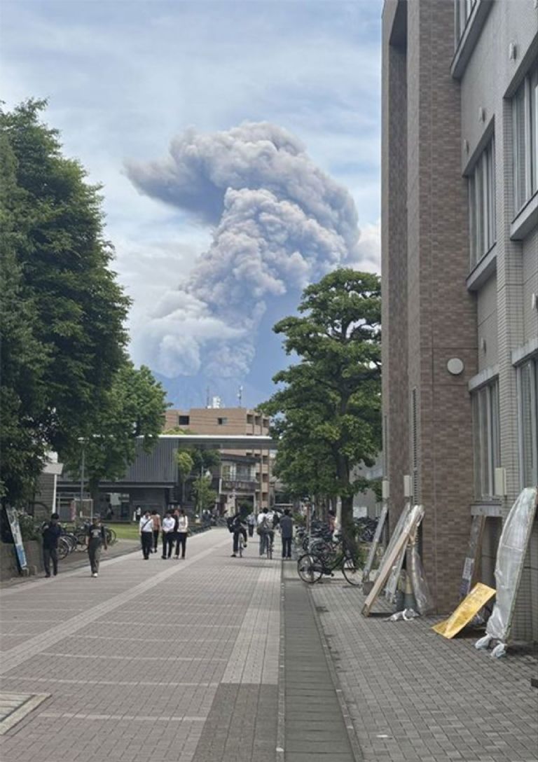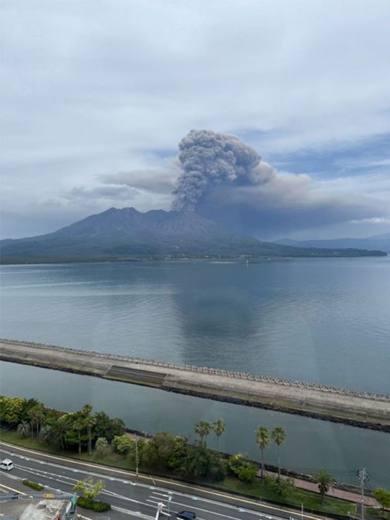 Un día normal en Japón con el volcán Sakurajima entrando en erupción.