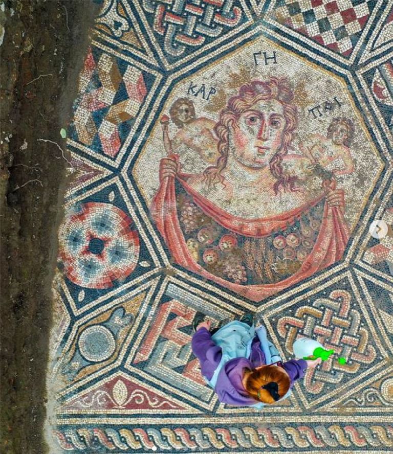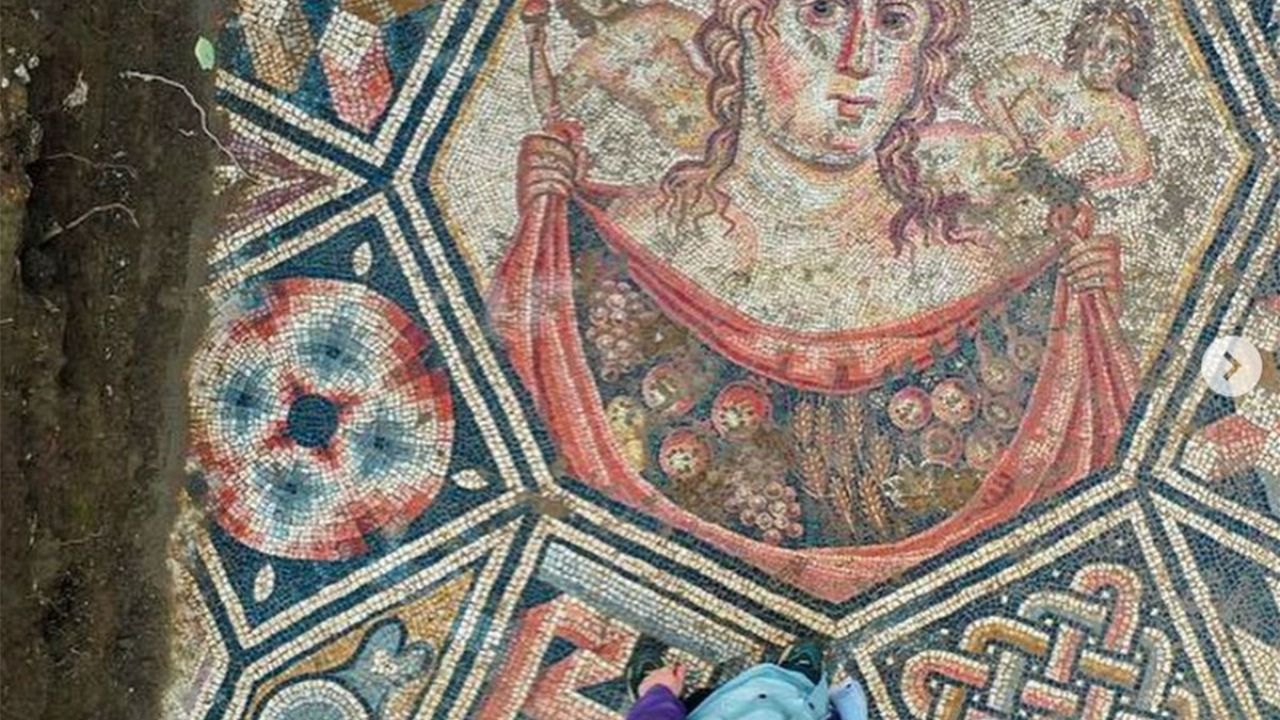Kahveci destacó el extraordinario detalle artístico del mosaico, señalando que el panel central representa una figura femenina que personifica la abundancia.